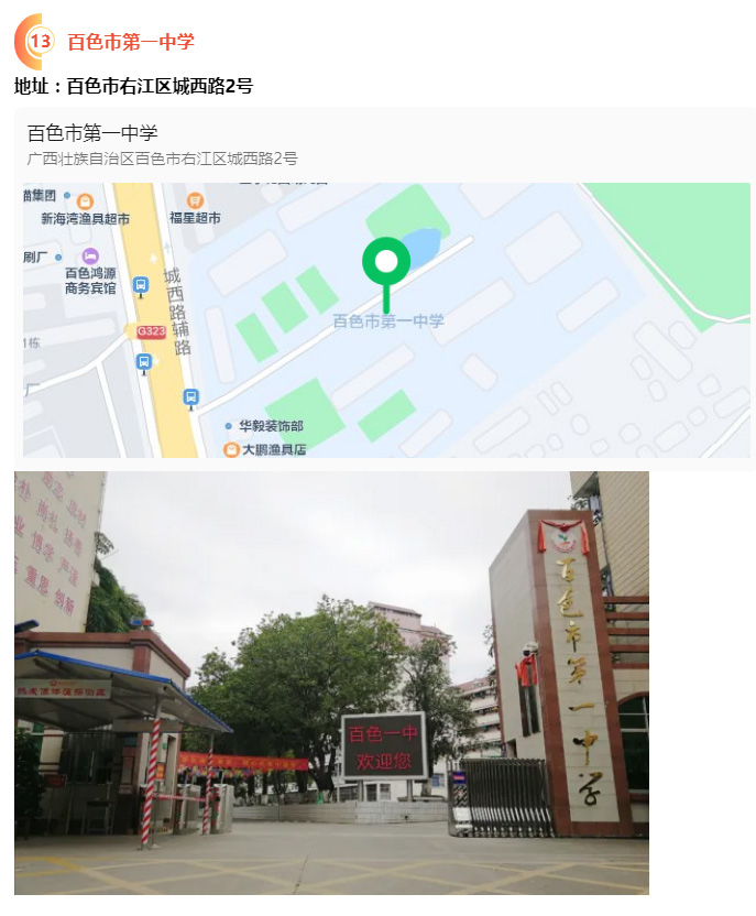 2.請(qǐng)?zhí)崆笆煜た键c(diǎn)地址,做好路線(xiàn)、住宿的安排。本次考試參考人數(shù)較多,考點(diǎn)分布分散,建議考生考前實(shí)地察看考點(diǎn),確認(rèn)考點(diǎn)入口位置,防止走錯(cuò)考點(diǎn)。請(qǐng)充分考慮考點(diǎn)周邊交通通行情況和停車(chē)場(chǎng)地容量,合理安排出行方式,預(yù)留充足時(shí)間,確??荚嚠?dāng)天按時(shí)到達(dá)。另外,考試期間百色市及各考點(diǎn)學(xué)校周邊的住宿比較緊張,請(qǐng)?zhí)崆邦A(yù)定。