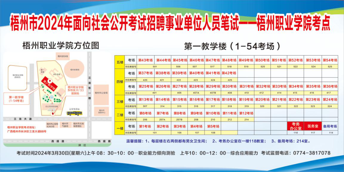 廣西2024年度事業(yè)單位公開招聘工作人員公共科目筆試梧州考點(diǎn)指引