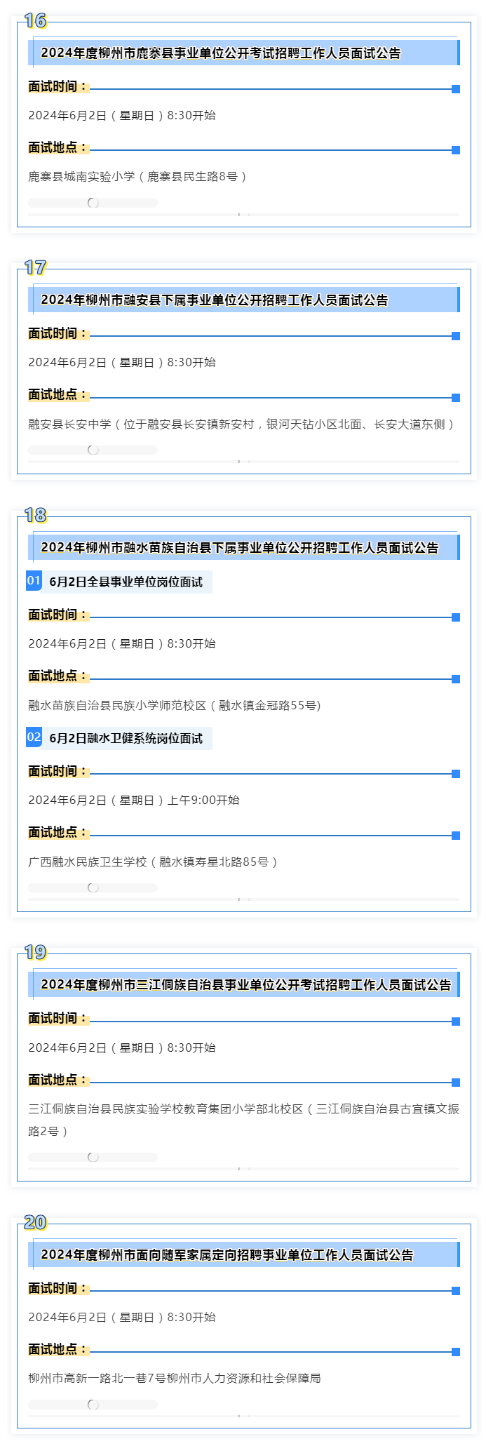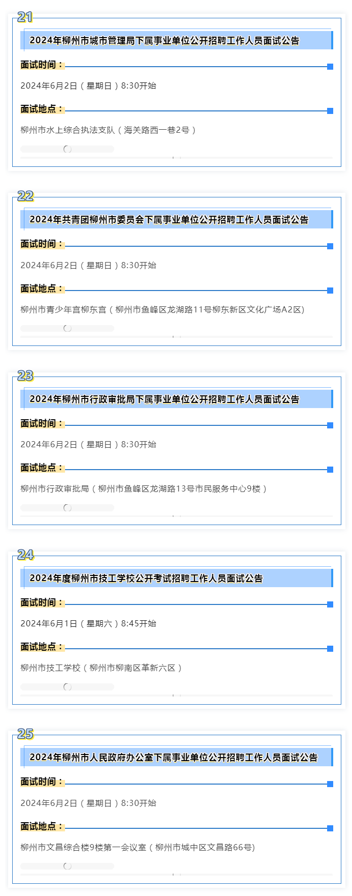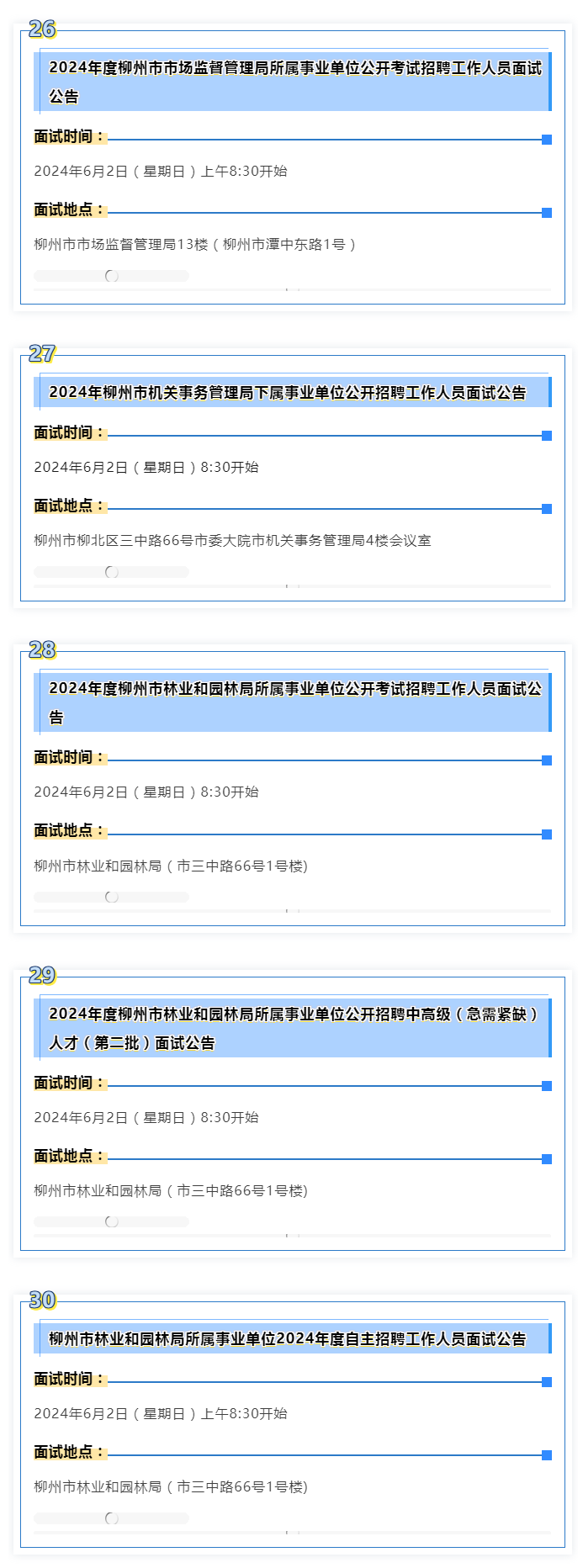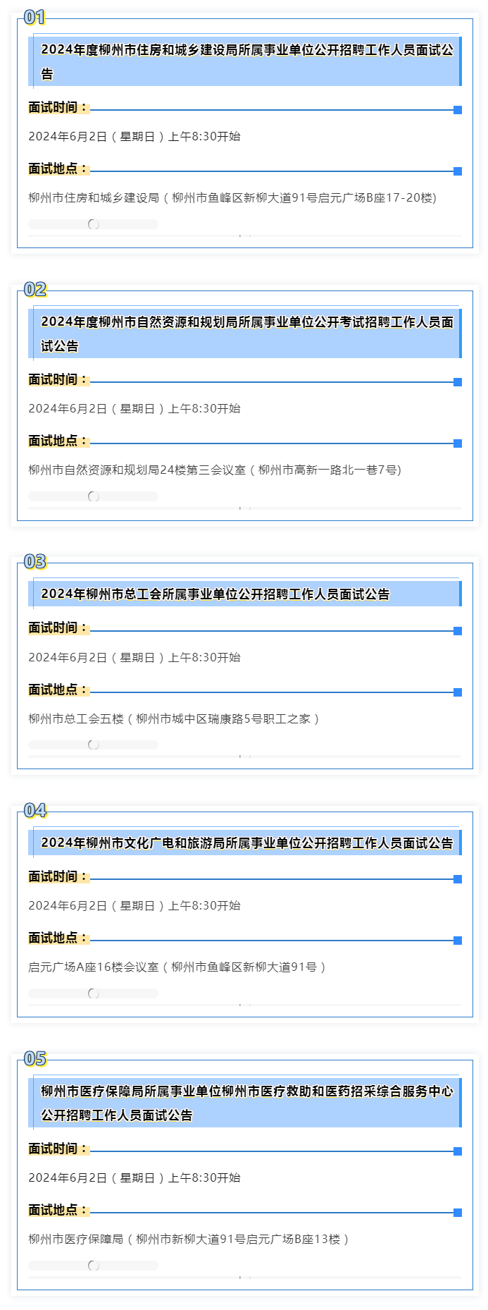 2024年度柳州市事業(yè)單位面試 本周末啟動(dòng)