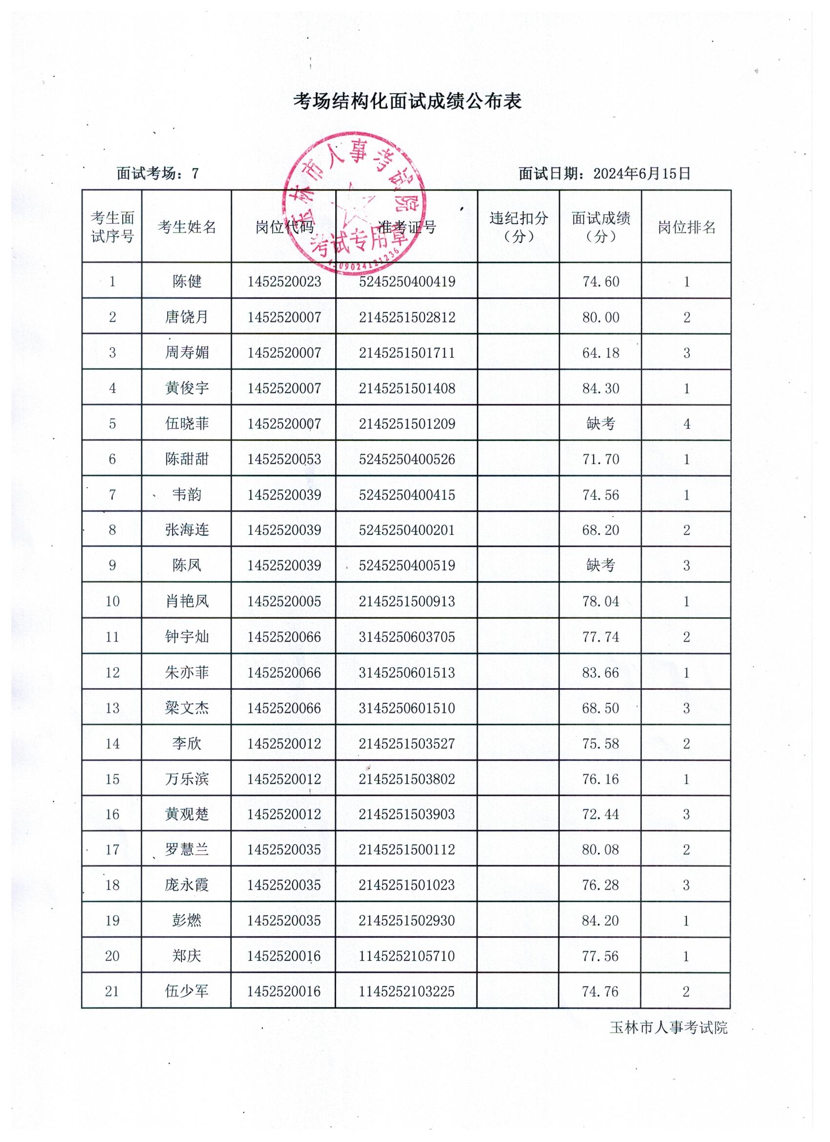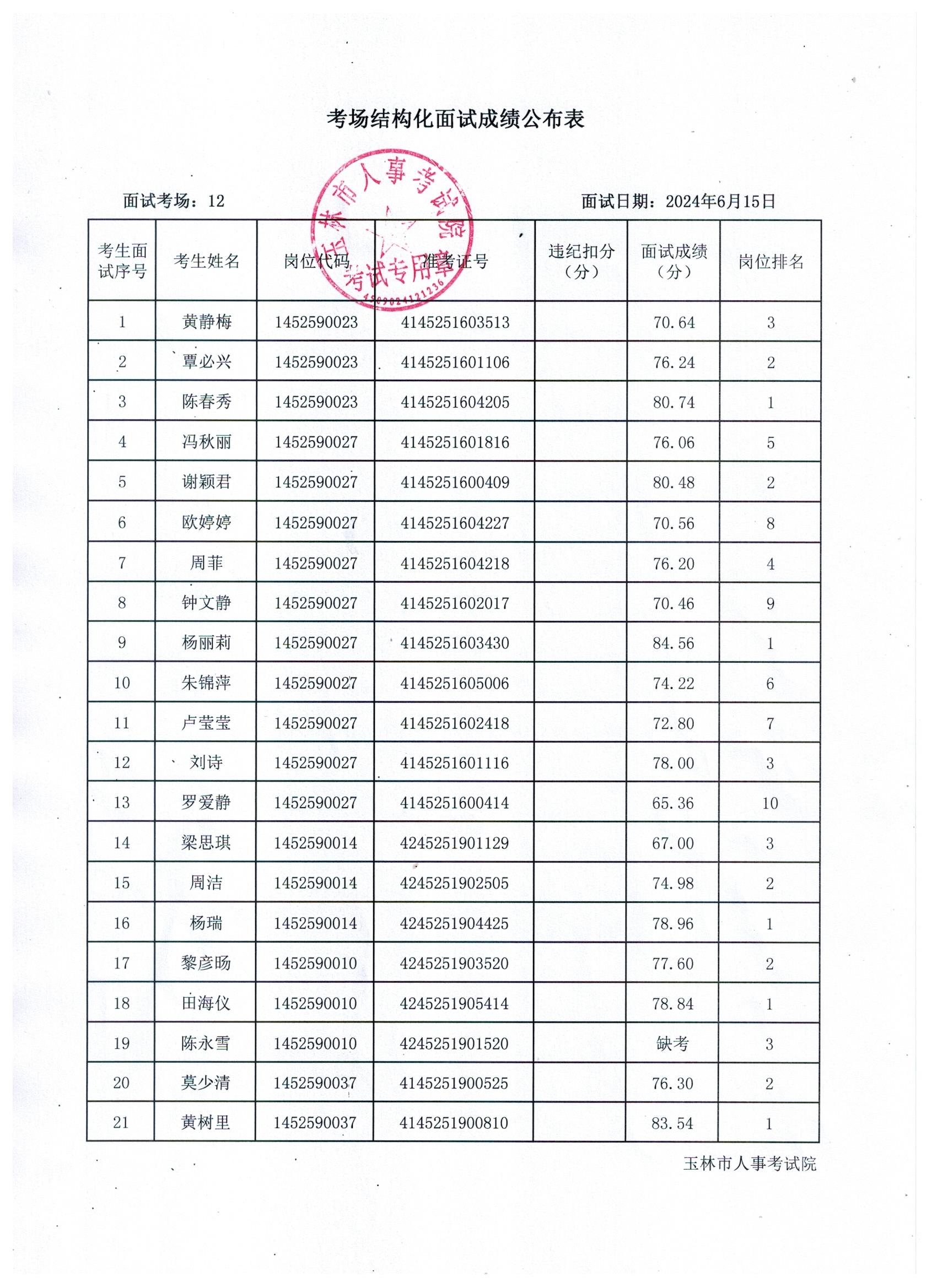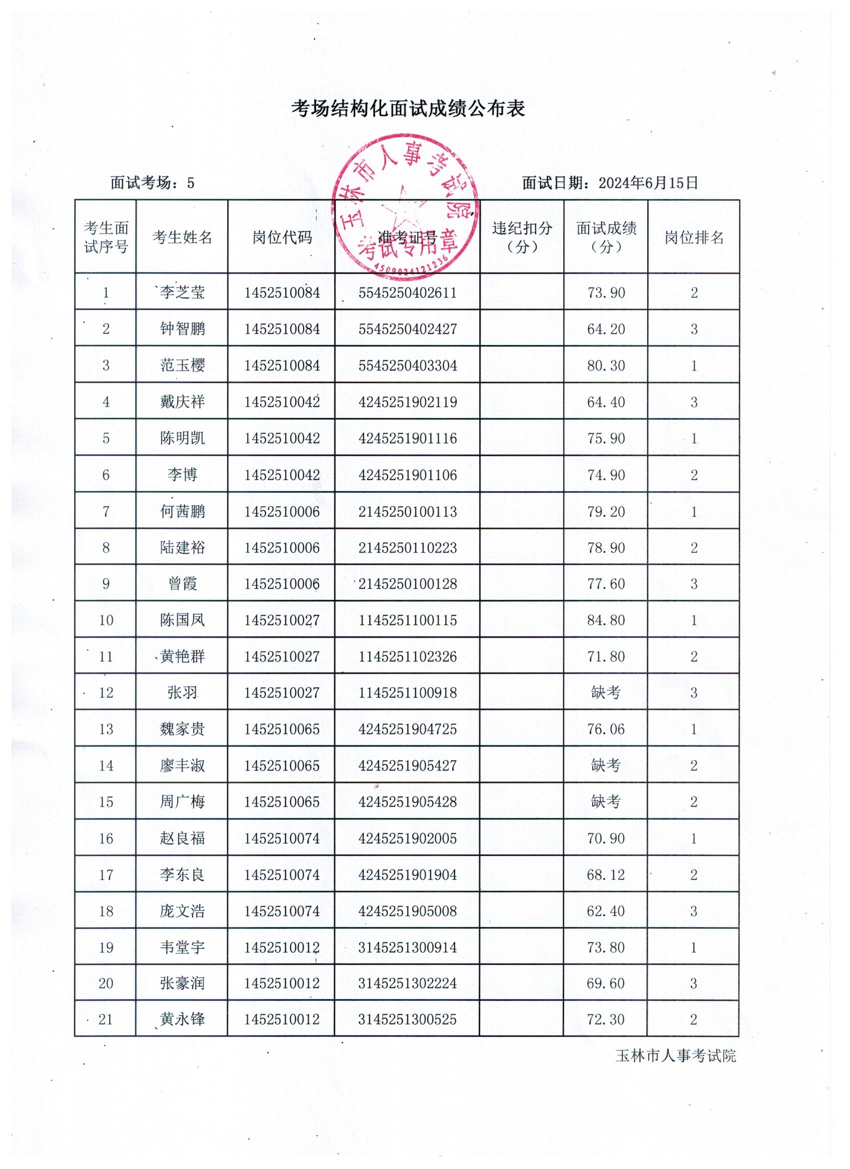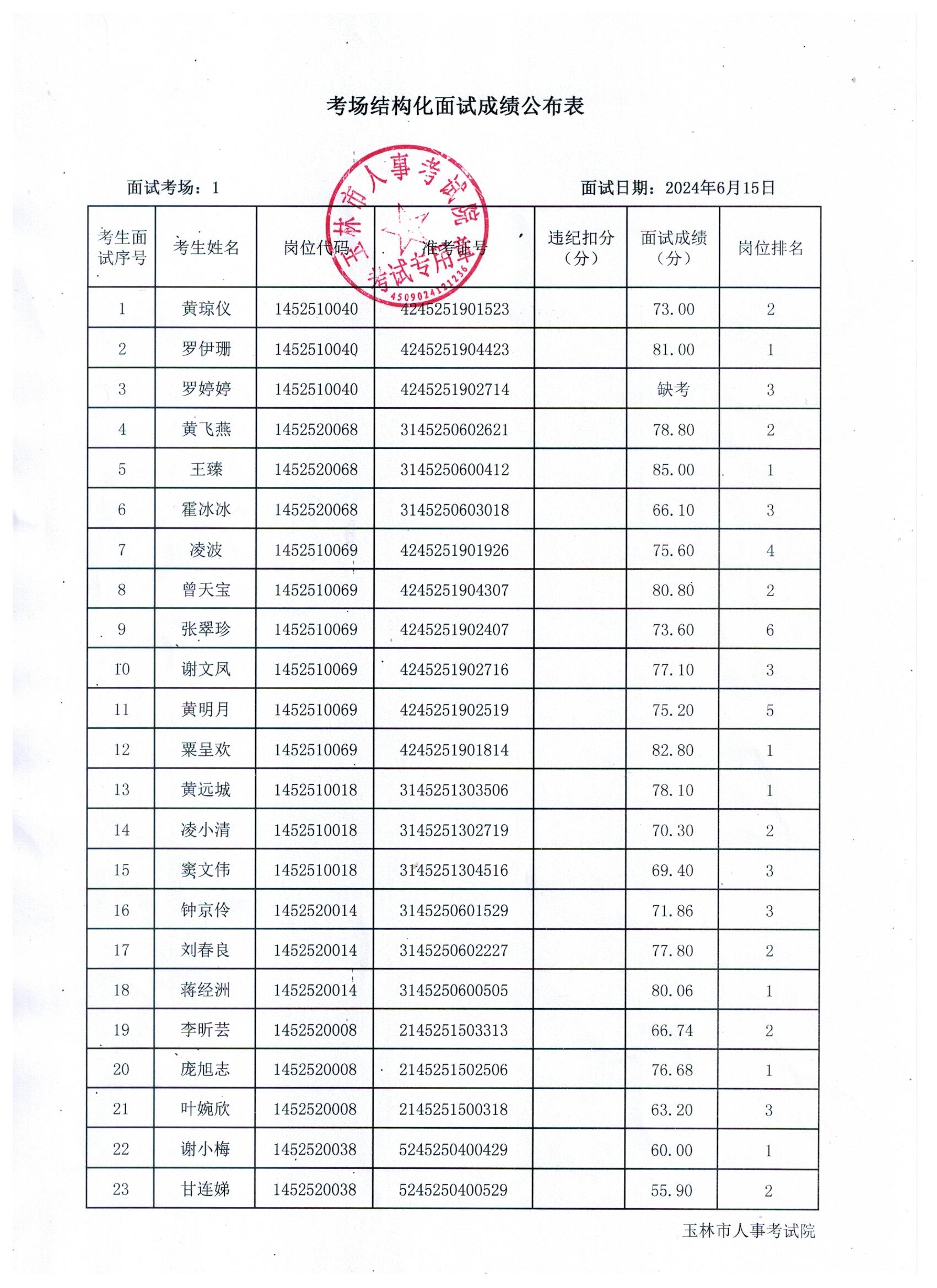 原文標題:2024年玉林市直(含玉州區(qū)、福綿區(qū)、玉東新區(qū))事業(yè)單位公開招聘人員面試成績公布(6月15日)