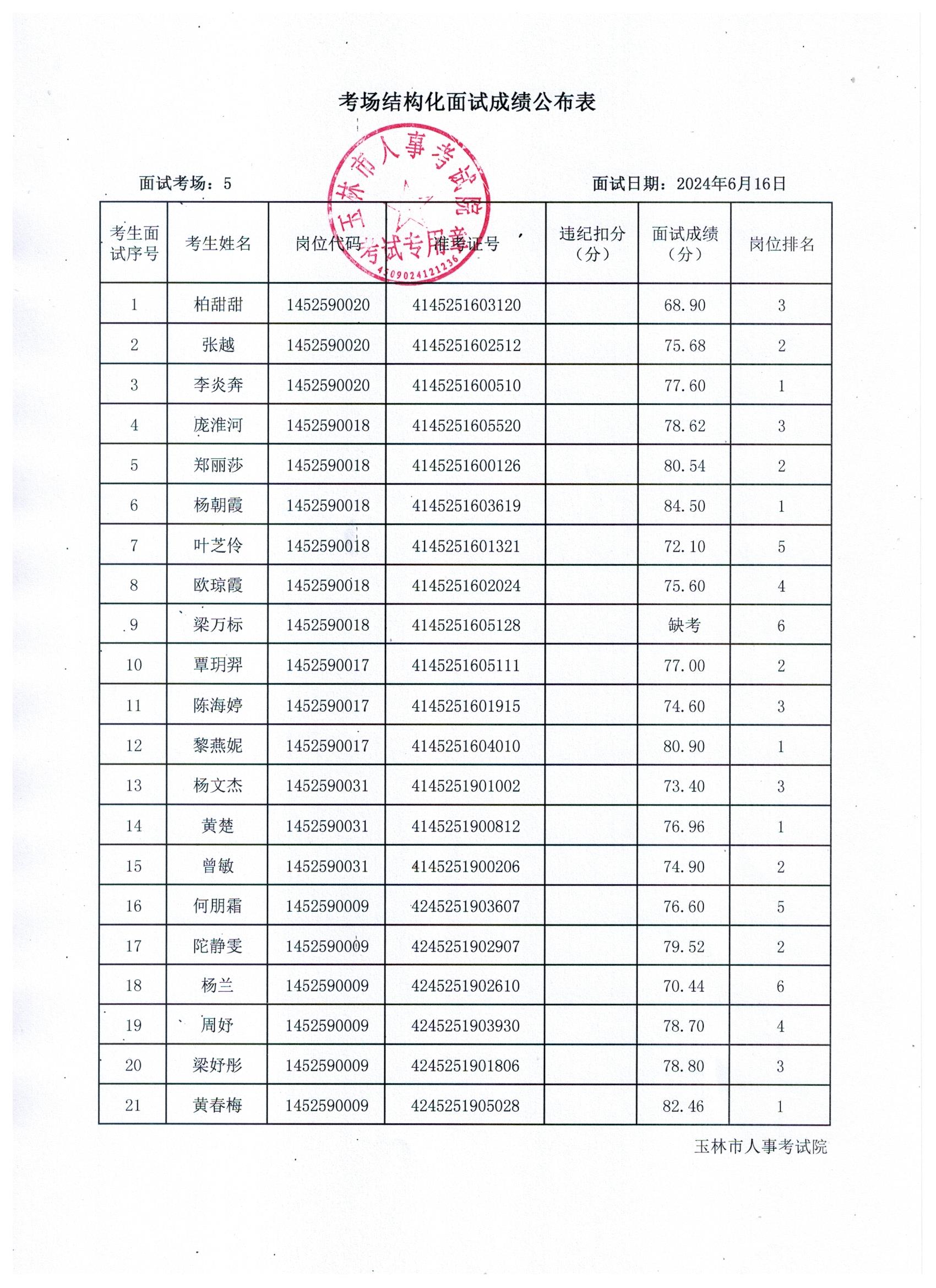 原文標(biāo)題:2024年玉林市直(含玉州區(qū)、福綿區(qū)、玉東新區(qū))事業(yè)單位公開招聘人員面試成績(jī)公布(6月16日)