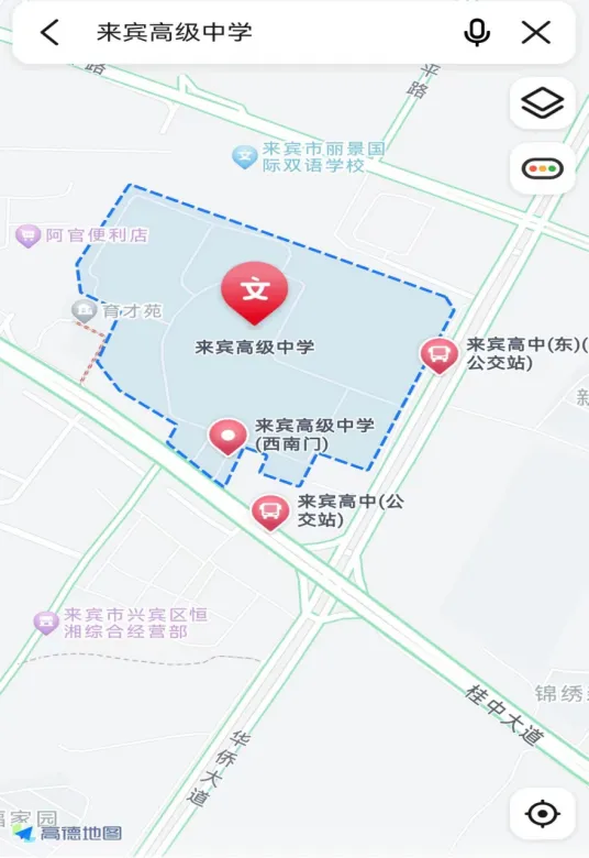 ▲來賓高級中學(xué)交通指引圖(來賓市興賓區(qū)桂中大道588號)。