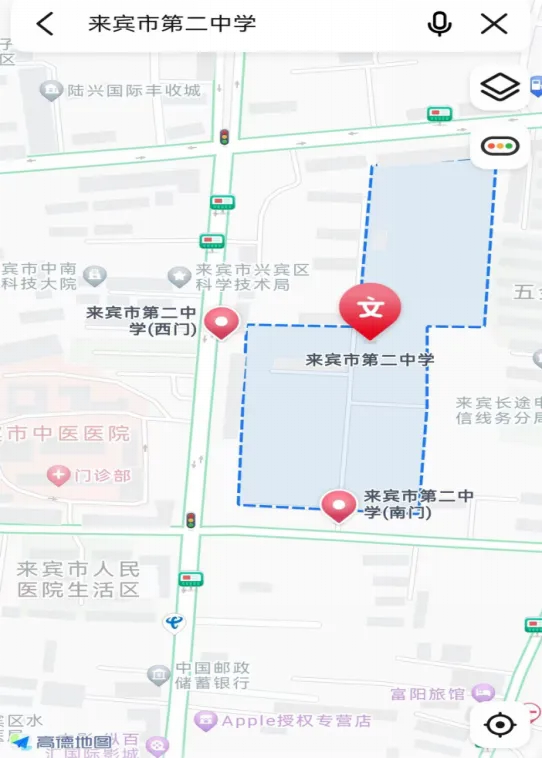 ▲來賓市第二中學(xué)交通指引圖(來賓市興賓區(qū)北四路62號)。