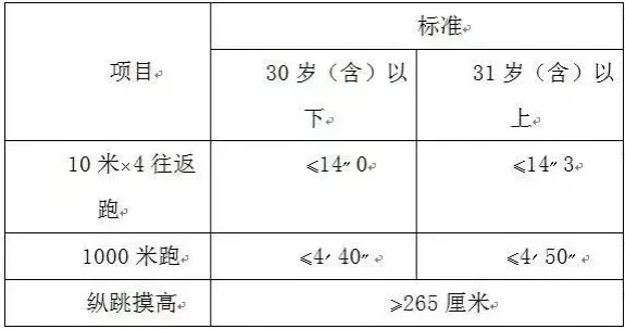 參照《關(guān)于印發(fā)公安機關(guān)錄用人民警察體能測評項目和標(biāo)準(暫行)的通知》(人社部發(fā)〔2011〕48號)的項目及測試規(guī)則,結(jié)合《公安民警體育鍛煉達標(biāo)手冊》成績標(biāo)準,本次體能測評的項目和標(biāo)準如下: