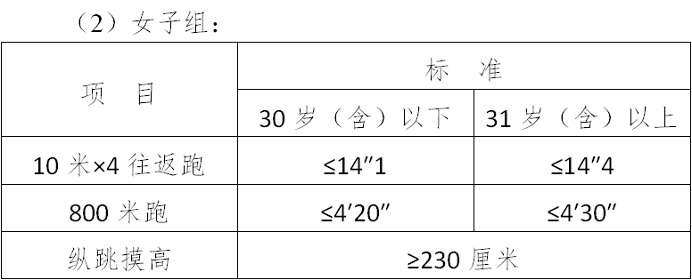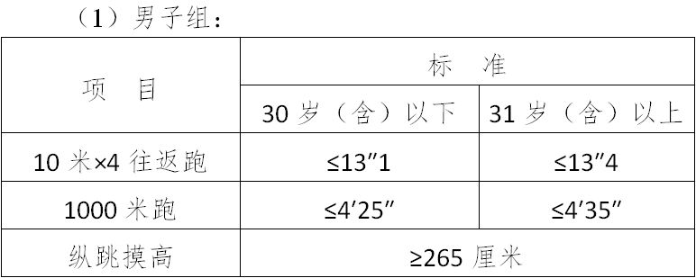 (三)面試體能測(cè)試三項(xiàng)全部達(dá)標(biāo)的,視為合格