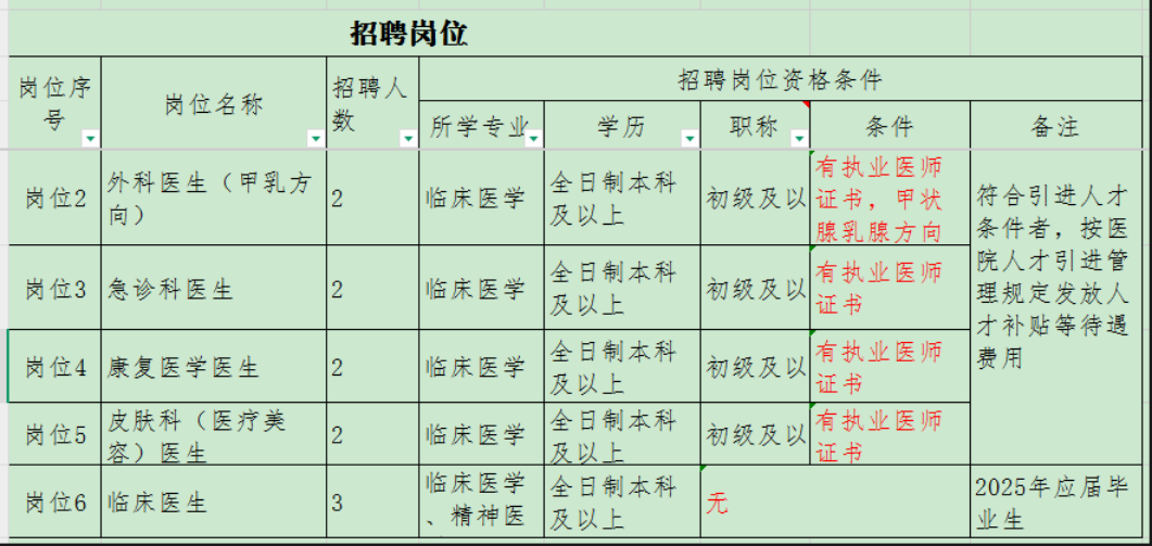 根據(jù)醫(yī)院業(yè)務發(fā)展需求,現(xiàn)向社會公開招聘以下崗位人員,具體招聘事宜如下: