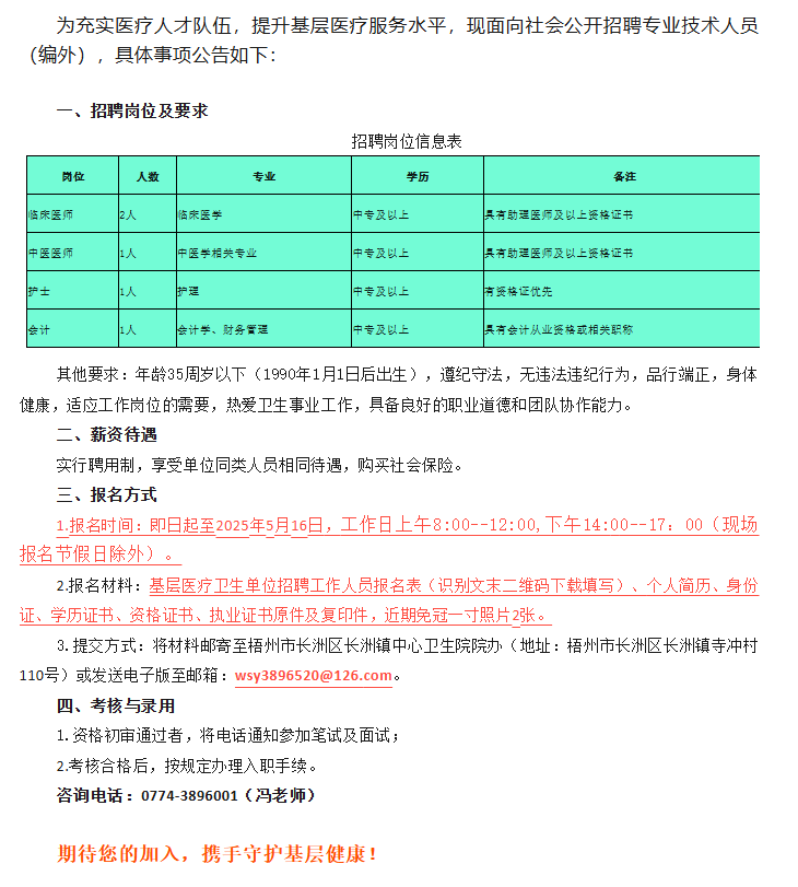 2025年梧州市長洲區(qū)長洲鎮(zhèn)中心衛(wèi)生院公開招聘公告