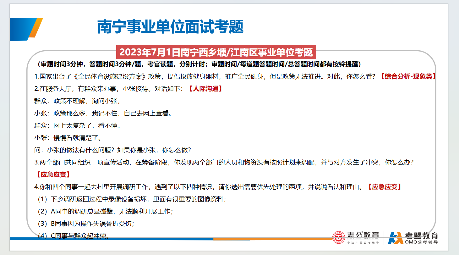 歷年南寧市事業(yè)單位面試考題