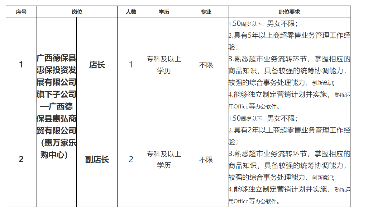 原文標題:廣西德??h惠保投資發(fā)展有限公司招聘公告
