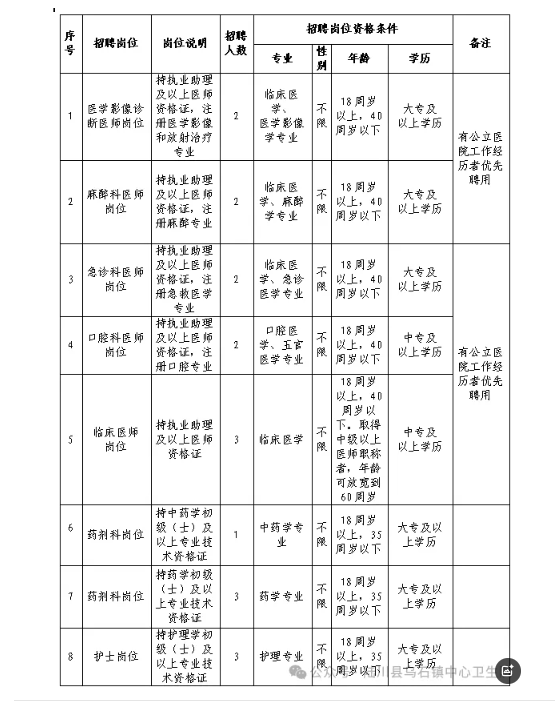 原文標(biāo)題:陸川縣烏石鎮(zhèn)中心衛(wèi)生院公開招聘編外人員公告
