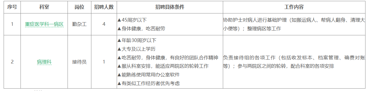 因醫(yī)院工作需要,現(xiàn)面向社會(huì)公開招聘5名普通合同工。現(xiàn)就有關(guān)事項(xiàng)公告如下: