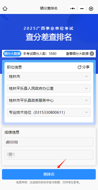 根據(jù)提示選擇自己的崗位,如實輸入分數(shù),不僅可以看見同崗位分差情況,還可以看見自己分數(shù)在本系統(tǒng)排名,曬分榜情況等: