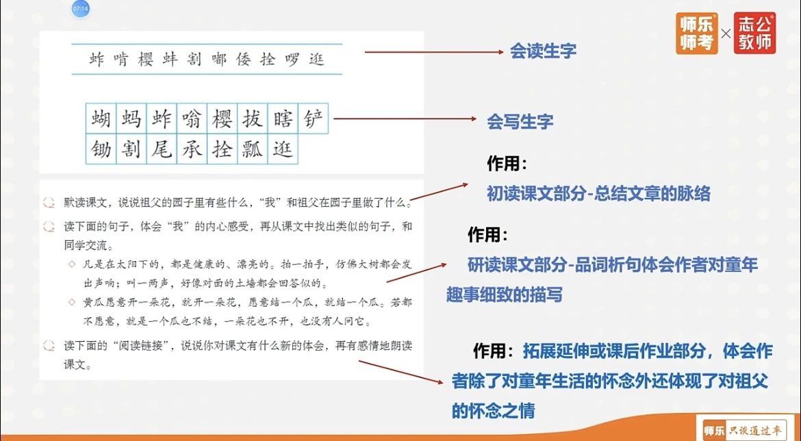 特惠價(jià):199元 ?結(jié)合歷年考情,分模塊系統(tǒng)梳理考試篇目 ?分篇目分步驟詳解教學(xué)設(shè)計(jì),提升備課速度 毫無思路怎么辦? 缺乏知識(shí)儲(chǔ)備怎么辦? 網(wǎng)課將精選核心課型 深入進(jìn)行教材梳理 網(wǎng)課內(nèi)容示例 ↓↓ 搶先體驗(yàn)價(jià):3.9元 ??語(yǔ)/數(shù)/英/幼/音/體/美/文綜/理綜 ??各學(xué)科高頻??计?/p>