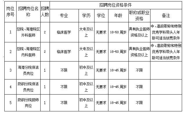 具體招聘辦法由港口區(qū)人民醫(yī)院人事科負(fù)責(zé)解釋。