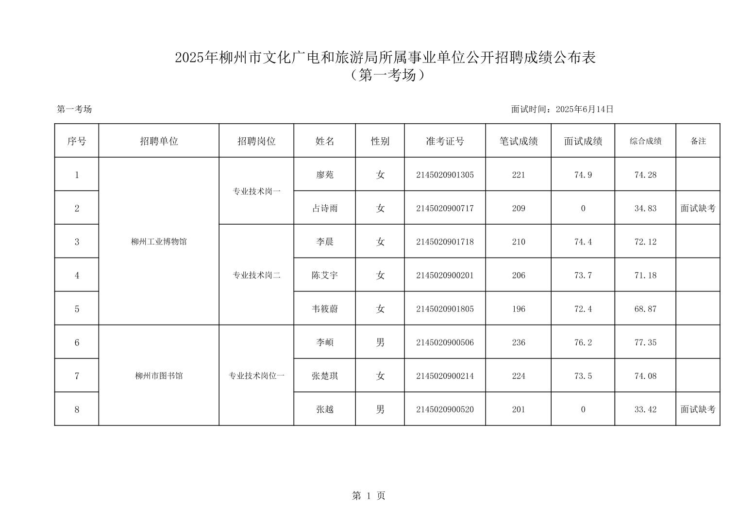 原文標(biāo)題:2025年柳州市文化廣電和旅游局所屬事業(yè)單位公開招聘成績(jī)公布表