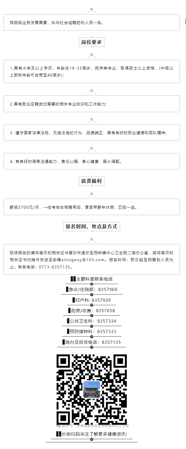 原文標(biāo)題:西嶺鎮(zhèn)中心衛(wèi)生院招聘啟事