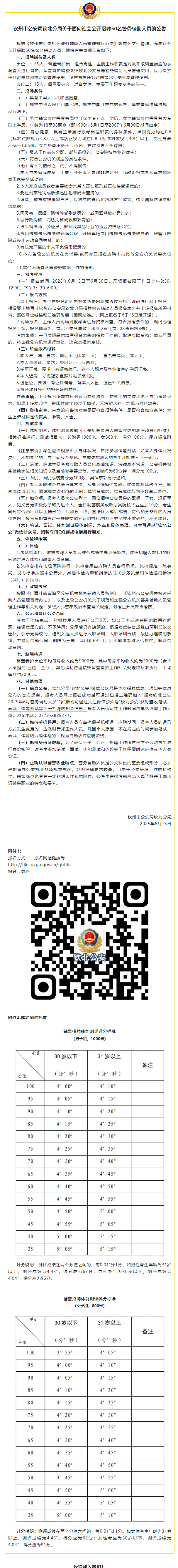 欽州市公安局欽北分局關(guān)于面向社會公開招聘50名警務(wù)輔助人員的公告