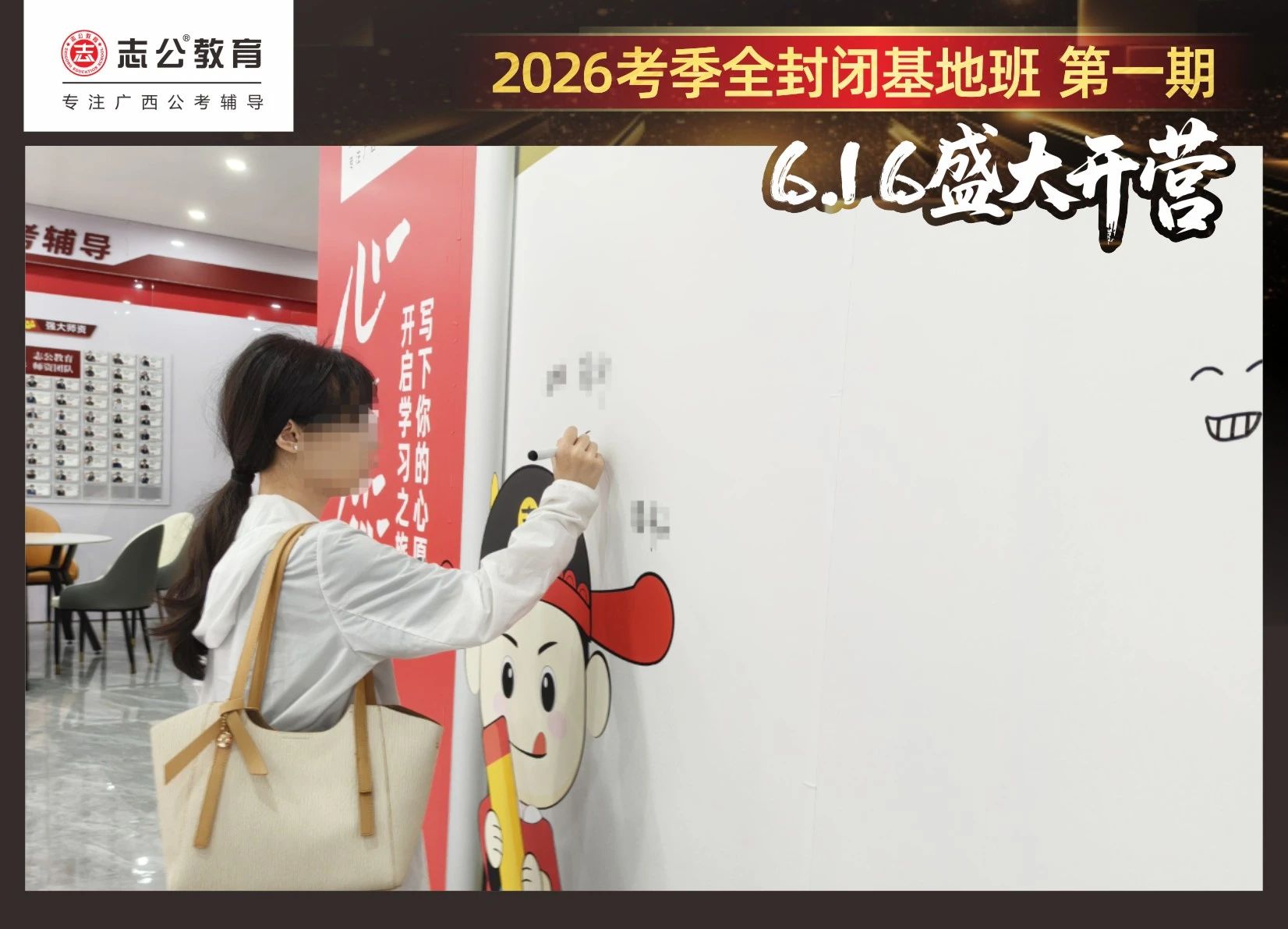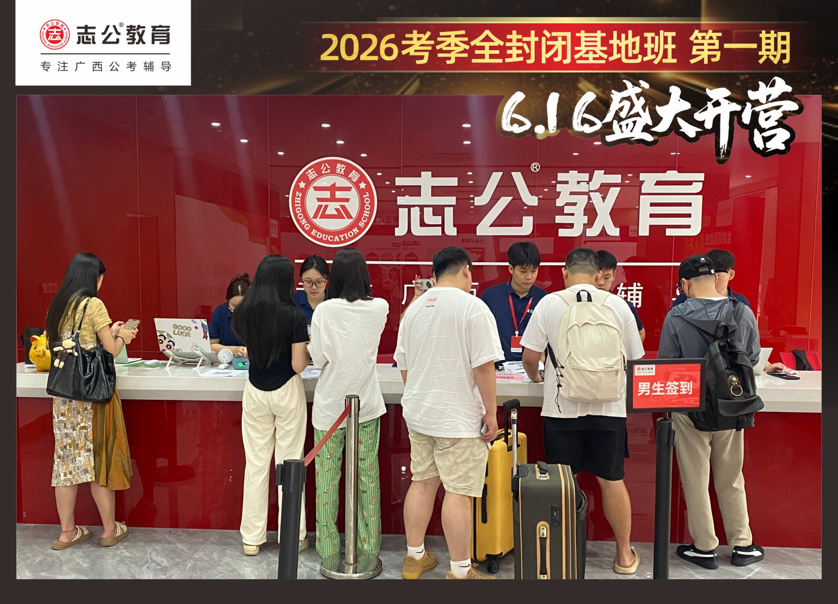 由于這段時間受臺風(fēng)影響,南寧迎來下雨天,但學(xué)員們滿懷先一步備考,快一步成功圓夢的滿滿炙熱信心,早早就在志公教育(中關(guān)村)全封閉基地前臺等候,6月16日,志公教育26考季全封閉基地班第1期的學(xué)員們齊聚一堂,正式開啟他們的公考備戰(zhàn)之旅。簽到環(huán)節(jié)作為基地班課程的第一站,不僅是對學(xué)員們的歡迎儀式,更是他們邁向夢想的第一步。