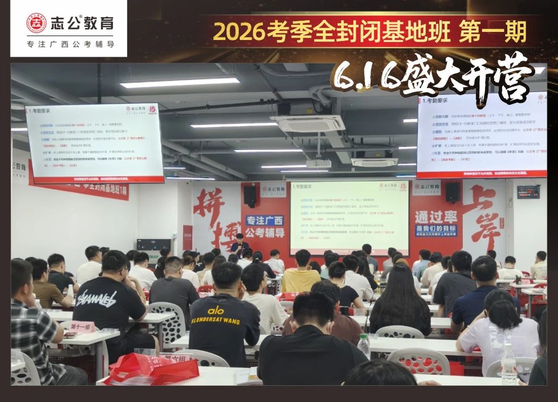 最后,要進(jìn)行的是摸底考試,志公教育26考季全封閉基地班第1期確實火爆,但是要知道廣西公考每年競爭對手更多人,只有通過考試才能知道自己在這么多學(xué)員中的水平情況,入營時的最初水平,更能知道自己在接下來的學(xué)習(xí)中是否有進(jìn)步!
