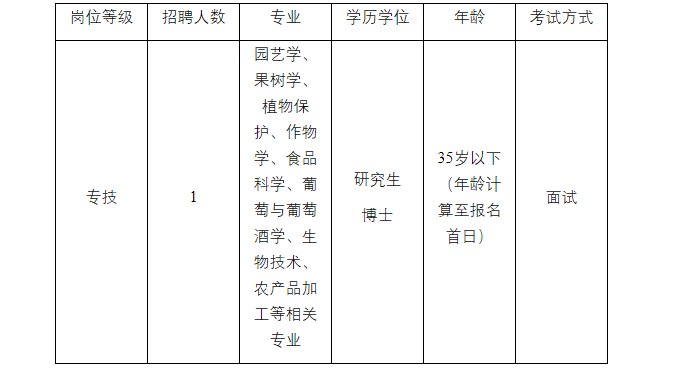 (二)園藝學、果樹學、植物保護、作物學、食品科學、葡萄與葡萄酒學、生物技術、農(nóng)產(chǎn)品加工等相關專業(yè)。