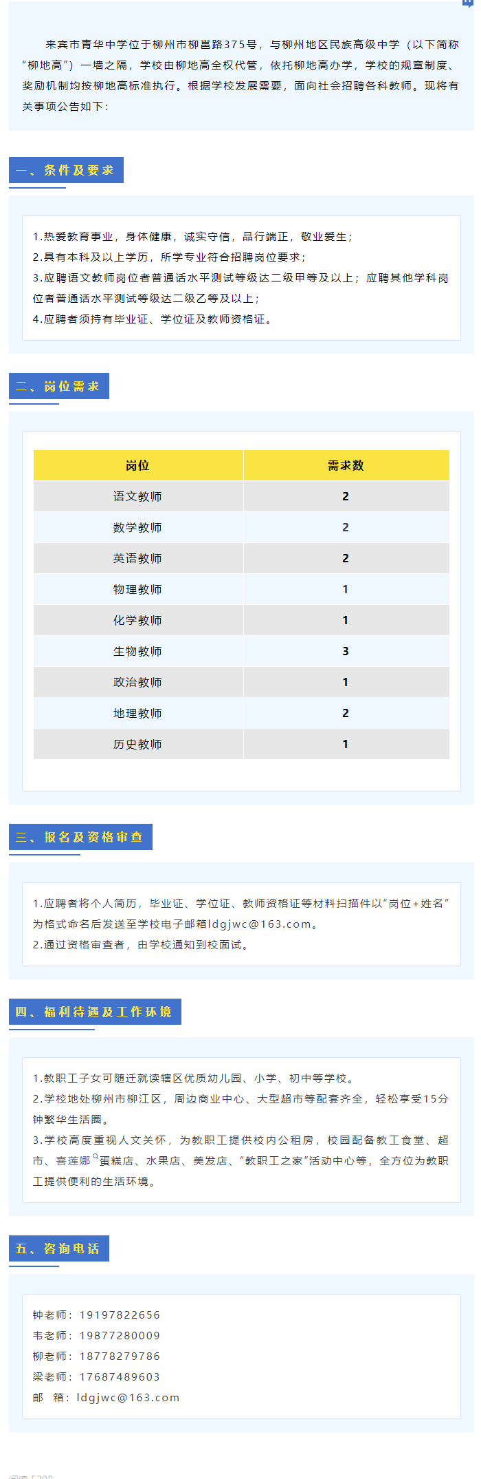 2025年柳州地區(qū)民族高級中學(xué)招聘教師若干人