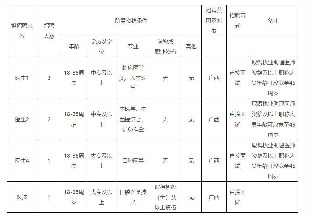 根據(jù)醫(yī)院發(fā)展需求,決定面向社會招聘醫(yī)生和醫(yī)技崗位人員7名,現(xiàn)將招聘有關(guān)事項公告如下: