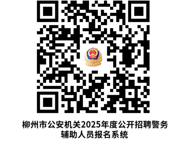 報(bào)名方式:通過(guò)掃描二維碼進(jìn)入報(bào)名網(wǎng)站報(bào)考,考生也可登錄柳州市人力資源和社會(huì)保障局網(wǎng)站(http://rsj.liuzhou.gov.cn)或進(jìn)入“柳州人社”微信公眾號(hào)、“柳州警方”微信公眾號(hào)關(guān)注相關(guān)招聘信息進(jìn)行報(bào)考,每人限報(bào)一個(gè)職位。