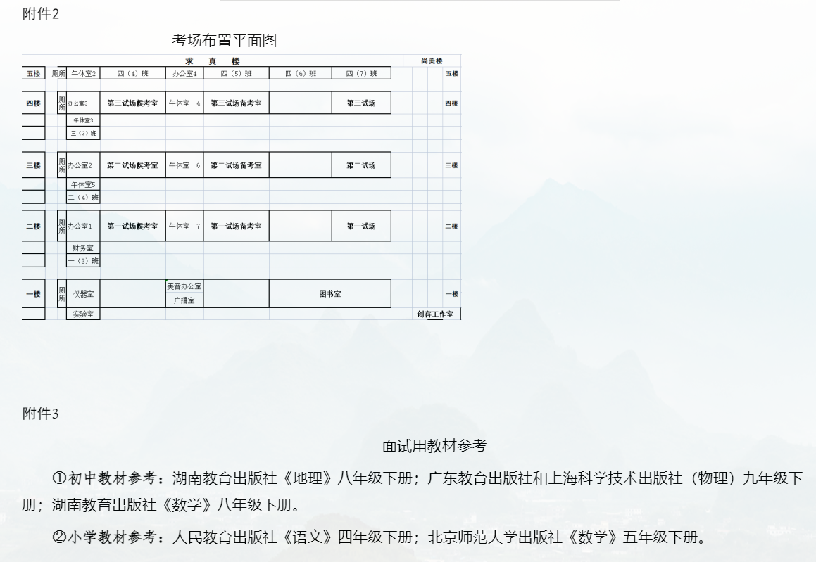 (二)面試內(nèi)容:面試主要是通過試講考察考生的專業(yè)素質(zhì)和教育教學綜合素質(zhì),包括:對教材的分析和把握程度、專業(yè)知識能力、教學設(shè)計、教學方法、教師素養(yǎng)等。試講教材為我縣相應(yīng)崗位學校用書,詳見面試用教材參考(附件3)。