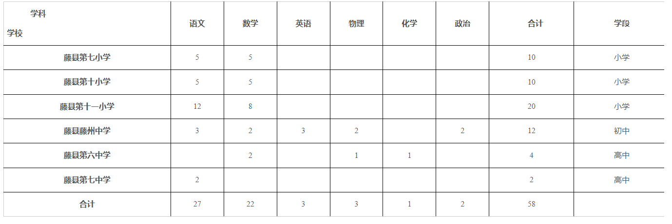 競(jìng)聘高中教師崗位必須是藤縣鄉(xiāng)村學(xué)校在編在崗的中小學(xué)教師(即不含縣城學(xué)校中小學(xué)教師),具有國(guó)民教育大學(xué)本科及以上學(xué)歷,并取得高級(jí)中學(xué)教師資格,且勝任應(yīng)聘崗位工作。