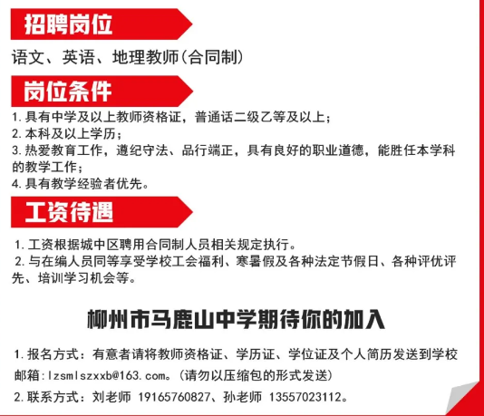 2025年柳州市馬鹿山中學(xué)招聘語文、英語、地理教師