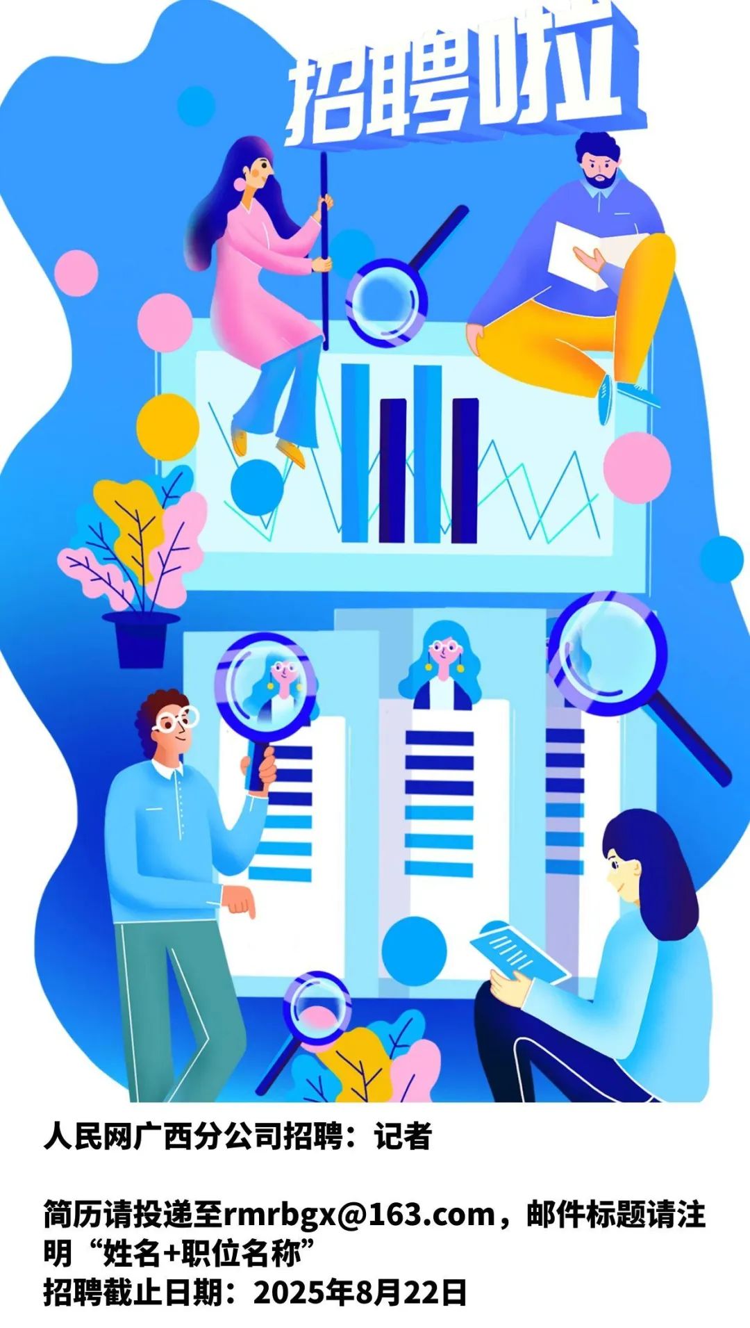 簡歷請投遞至rmrbgx@163.com,郵件標題請注明“姓名+職位名稱”,招聘截止日期:2025年8月22日。