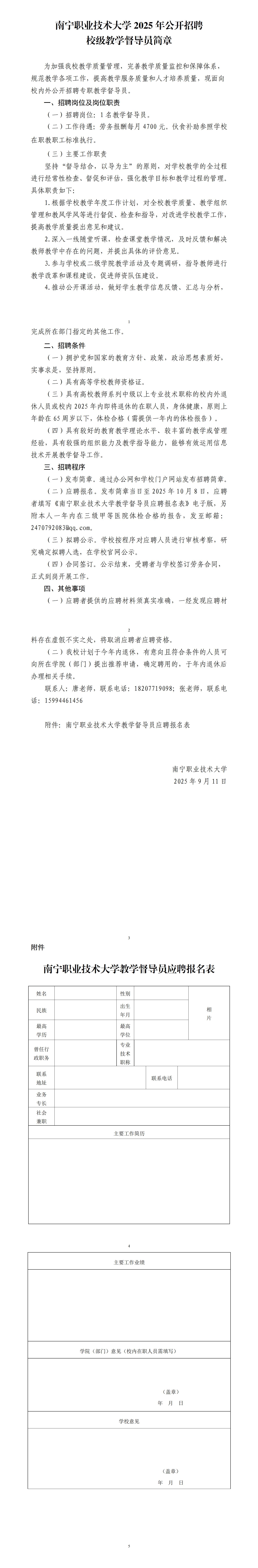 2025年南寧職業(yè)技術(shù)大學公開招聘校級教學督導員簡章