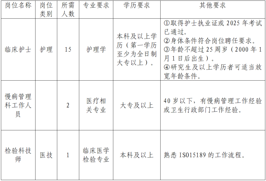 (一)報名。應(yīng)聘者需在2025年9月21日前將個人電子簡歷及應(yīng)聘所需佐證材料,包括但不限于畢業(yè)證(第一學歷和最高學歷)、學位證、執(zhí)業(yè)證(考試成績)、職稱證、進修結(jié)業(yè)證、??谱o士培訓(xùn)合格證、執(zhí)業(yè)資格考試成績單等打包發(fā)送至rsk7836669@163.com郵箱,報名材料以“姓名+專業(yè)+衛(wèi)技招聘”名字命名。