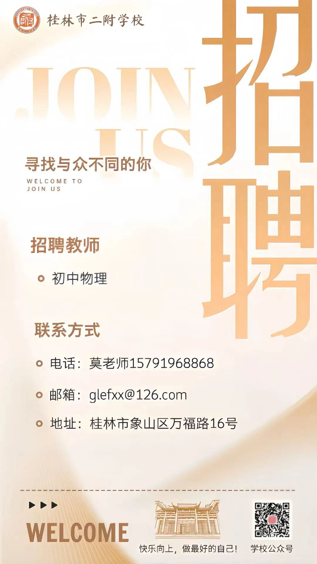 2、應(yīng)聘材料只接收PDF個(gè)人簡歷,郵件主題及簡歷文件名均以“應(yīng)聘學(xué)段+學(xué)科+姓名+電話+優(yōu)勢標(biāo)簽”命名(例:初中+語文+李華+電話號(hào)碼+省級(jí)教學(xué)能手)