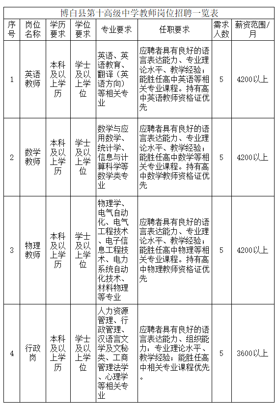 原文標題:博白縣第十高級中學2025年人才招聘