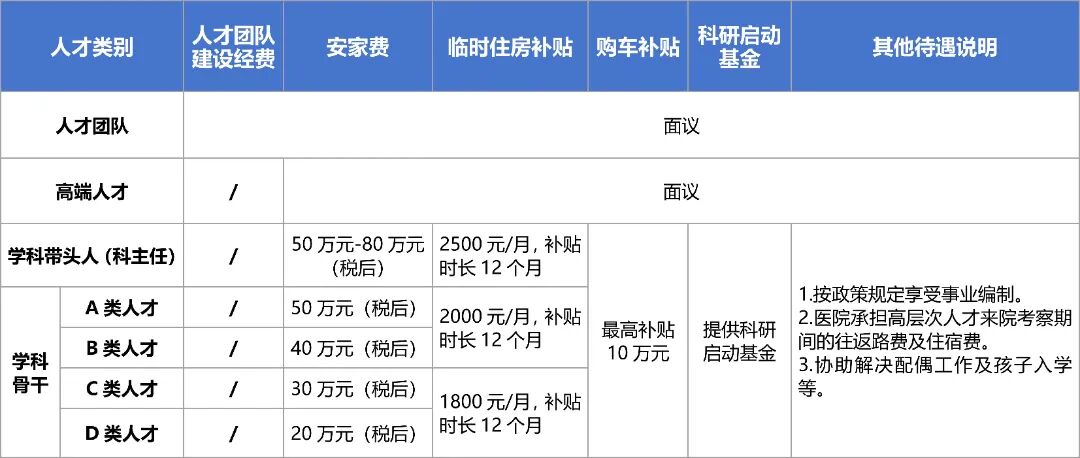 聘用為急需緊缺專業(yè)崗位醫(yī)師(緊缺專業(yè)包括:重癥醫(yī)學科、麻醉科、感染性疾病科、兒科、急診醫(yī)學科、病理科、精神科、產(chǎn)科、神經(jīng)外科、超聲科)的碩士研究生或符合“雙一流”建設高校及“雙一流”建設學科碩士研究生,給予5-10萬安家費。
