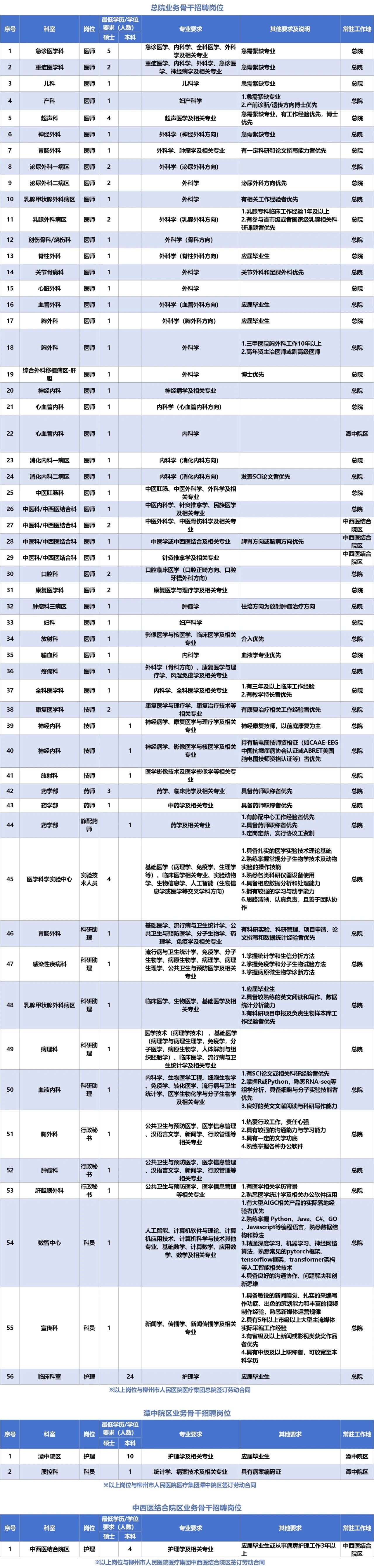 具體招聘公告詳見醫(yī)院官網(wǎng)(https://www.lzry.com.cn/)人員招聘欄目,具體招聘辦法由柳州市人民醫(yī)院解釋,集團院區(qū)待遇按各院區(qū)相關(guān)制度執(zhí)行,由各院區(qū)人力資源部門負責解釋。