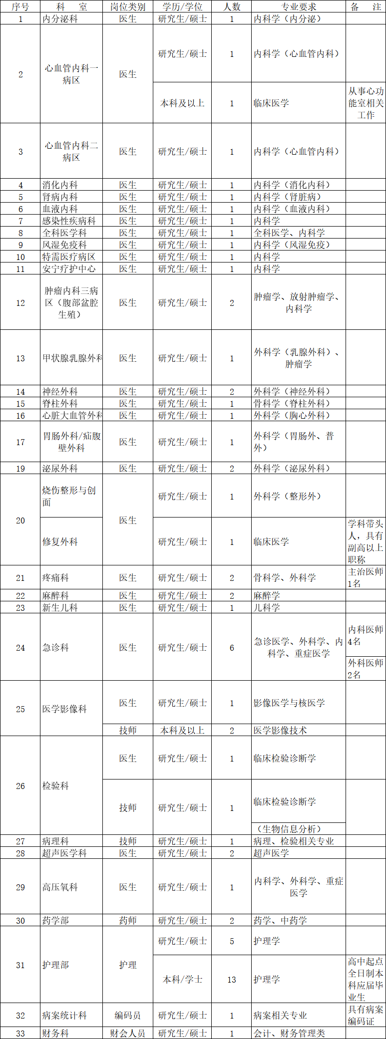 醫(yī)院長(zhǎng)期招聘各臨床醫(yī)技科室博士等高層次人才,人數(shù)不限。