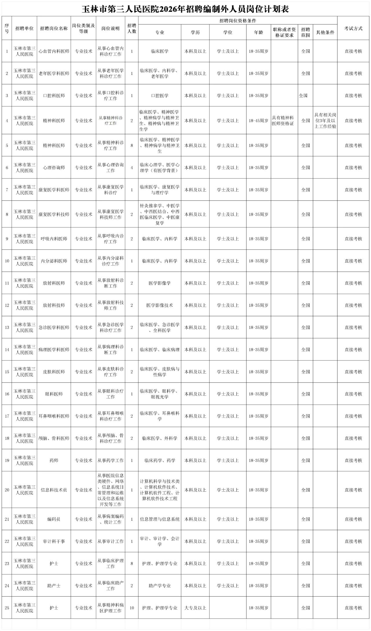 原文標題:2026年玉林市第三人民醫(yī)院公開招聘編制外人員公告