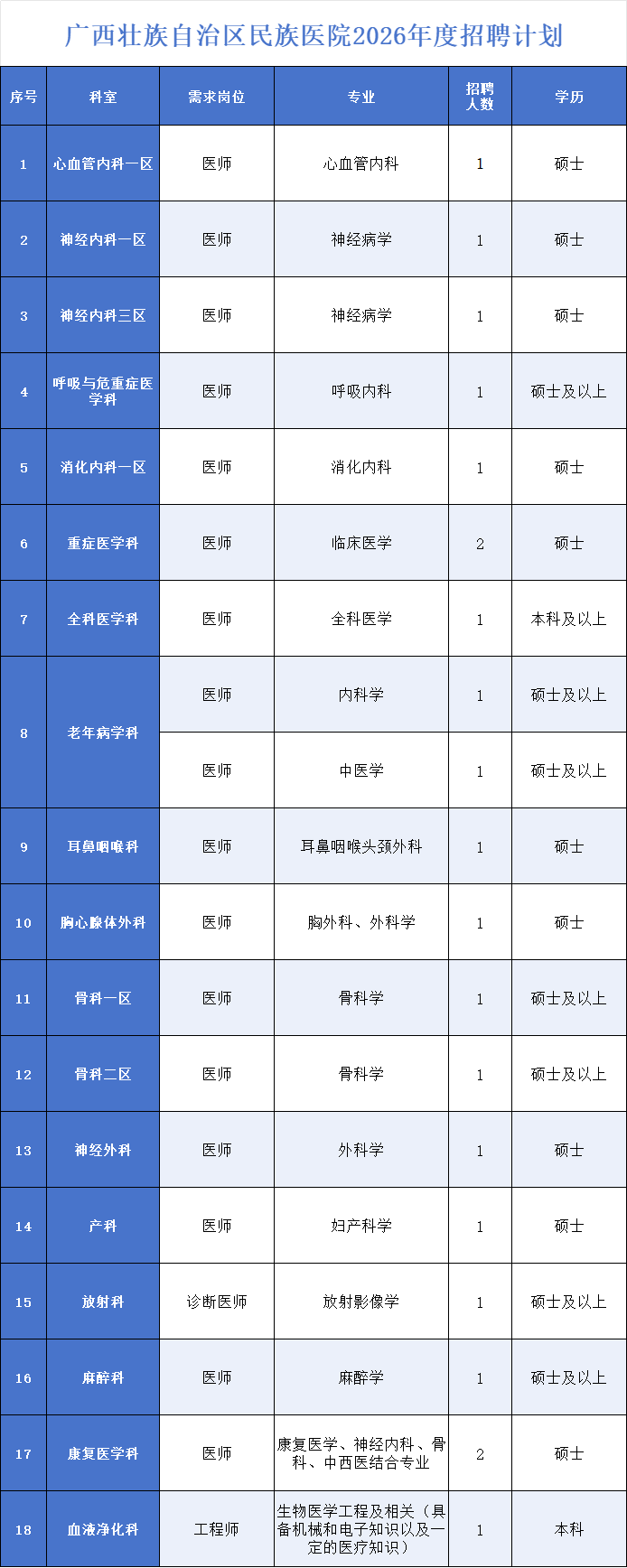 (地址:廣西南寧市西鄉(xiāng)塘區(qū)明秀東路232號廣西壯族自治區(qū)民族醫(yī)院8號樓3樓人事科,聯(lián)系人:莫老師,郵編:530001,聯(lián)系電話:0771-3110058)