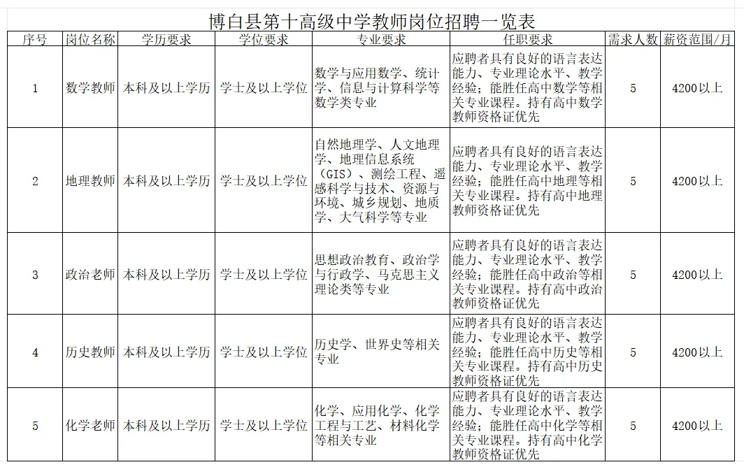 原文標題:博白縣第十高級中學2026年教師招聘啟事