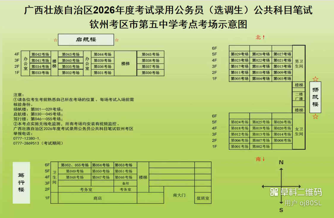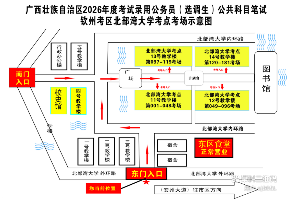 欽州考區(qū)共設(shè)三個(gè)考點(diǎn),分別為北部灣大學(xué)考點(diǎn)、北部灣職業(yè)技術(shù)學(xué)校考點(diǎn)、欽州市第五中學(xué)考點(diǎn)。(考點(diǎn)地址和具體考場(chǎng)安排請(qǐng)掃附后的二維碼查看)