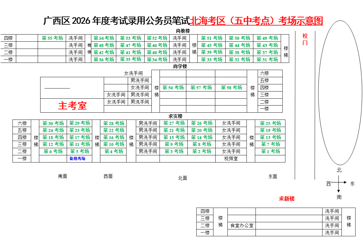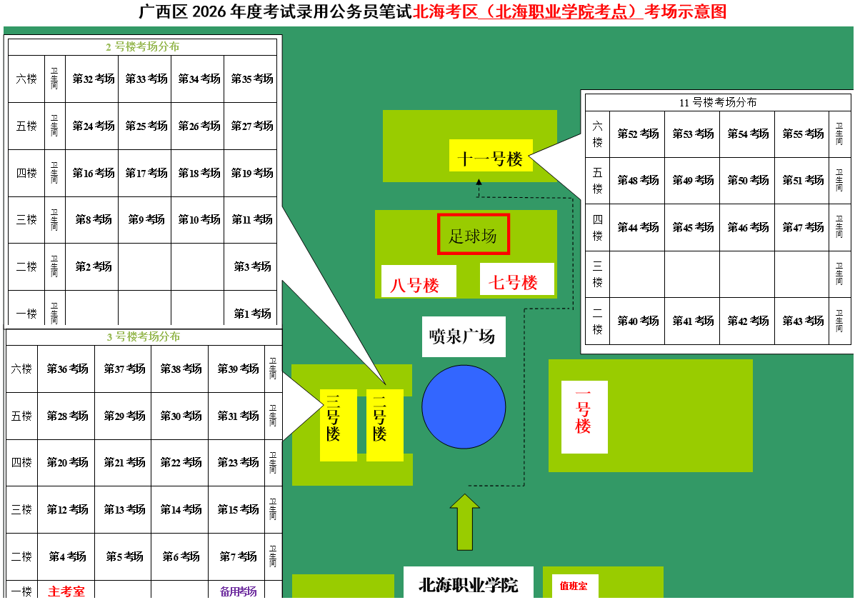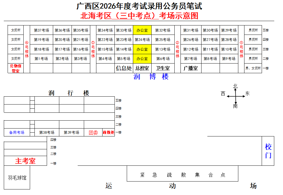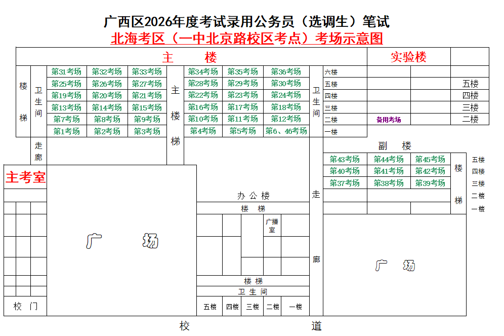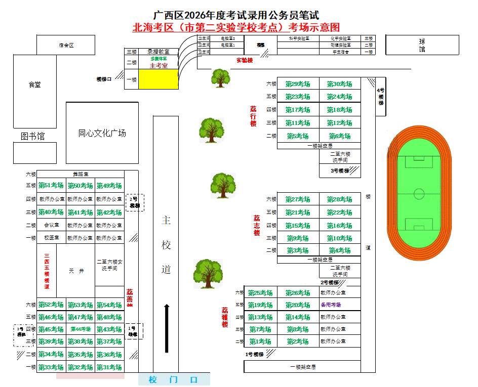 北??紖^(qū)共設置6個考點,具體考點考場布置分別如下: