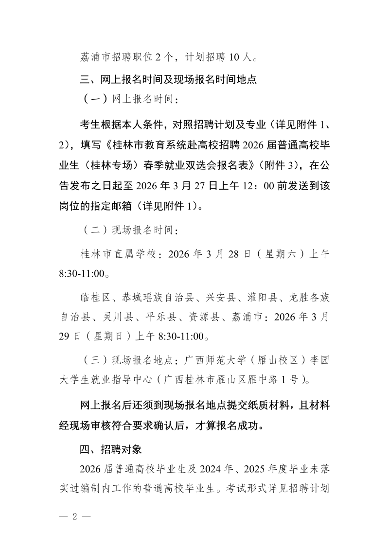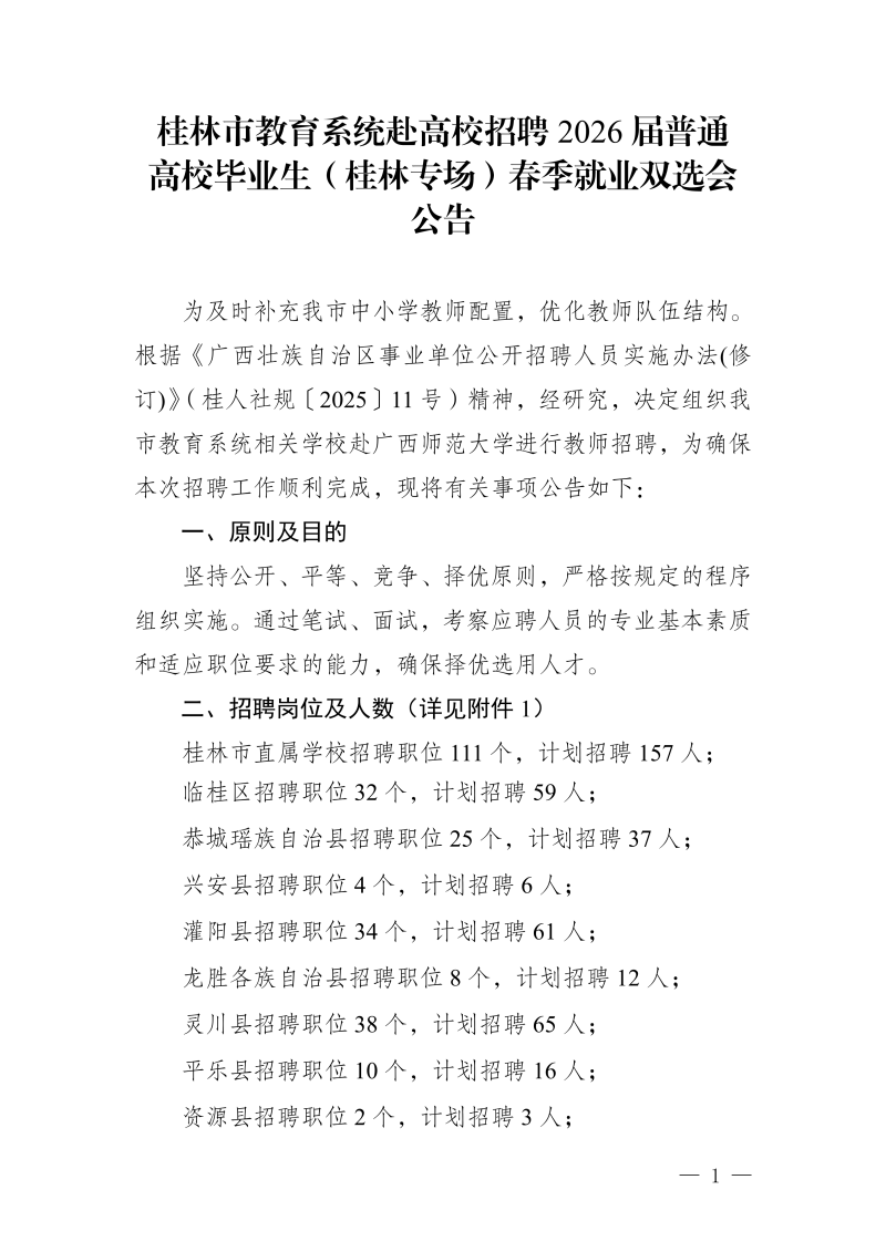 原文標(biāo)題:桂林市教育系統(tǒng)赴高校招聘2026屆普通高校畢業(yè)生(桂林專場(chǎng))春季就業(yè)雙選會(huì)公告